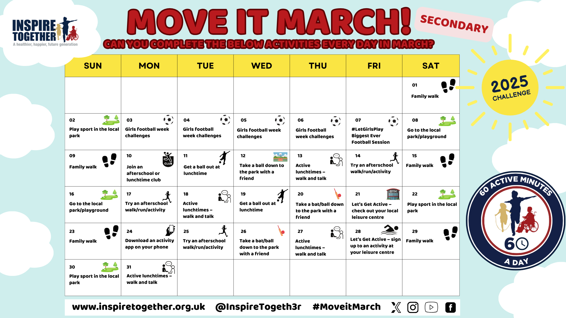 Please click on the themes below which will direct you to a pdf which contains resources to help young people to get 60 active minutes a day.